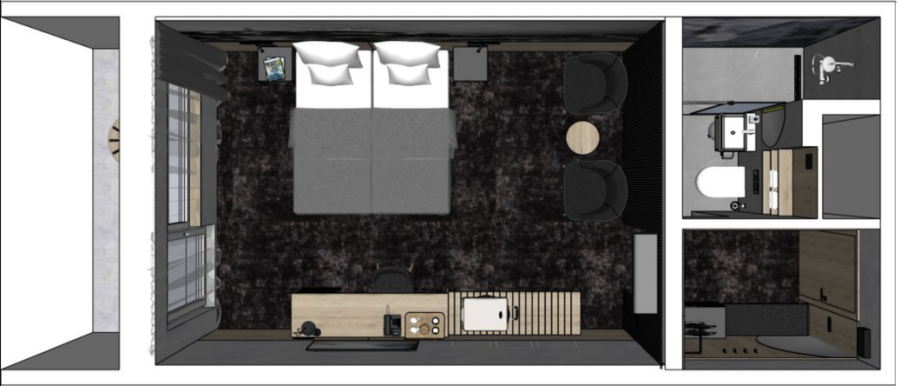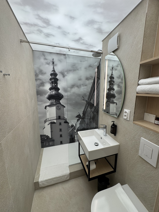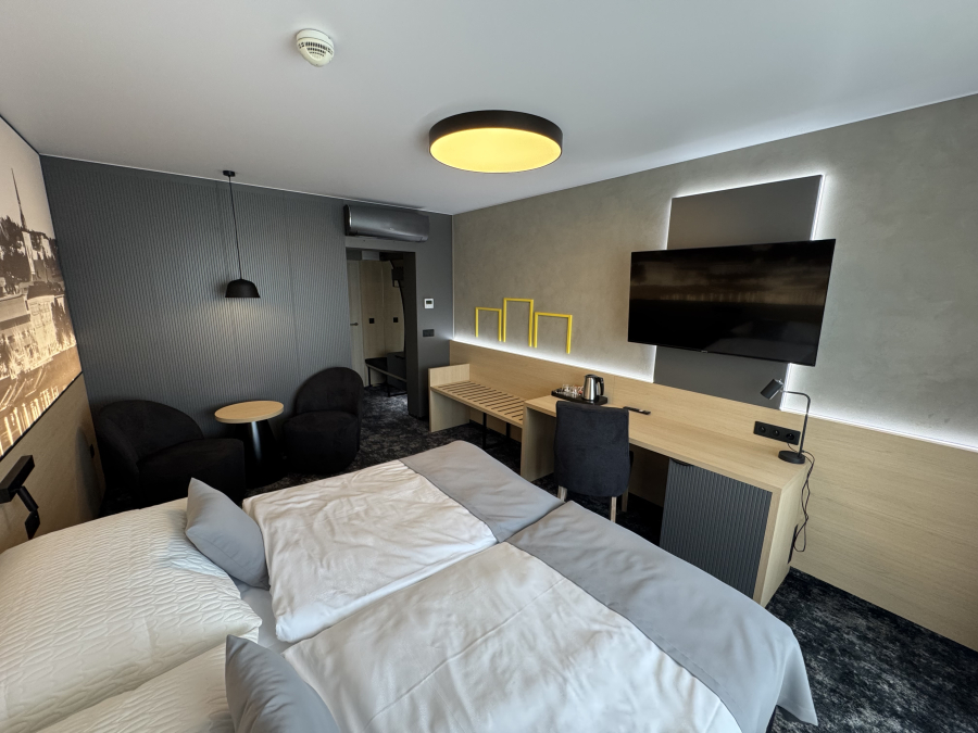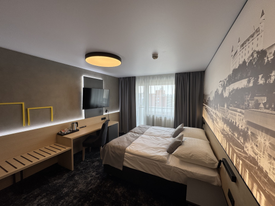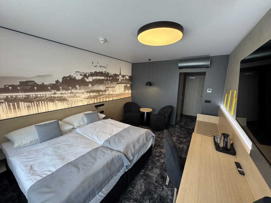 Štýlová izba inšpirovaná pulzujúcim mestom ponúka pohodlnú springbed posteľ (možnosť oddelenia), dizajnový nábytok a veľkoformátovú podsvietenú fotografiu Bratislavy, ktorá vytvára jedinečnú atmosféru hneď po vstupe. Praktický kuforbox, ambientné osvetlenie a vizuálne oživená kúpeľňa so svetelným stropom robia z izby ideálny priestor na krátky mestský pobyt.